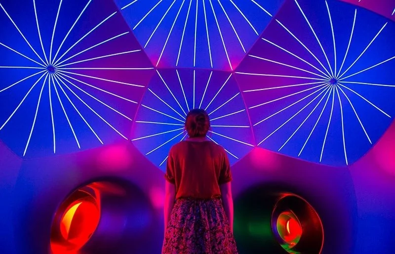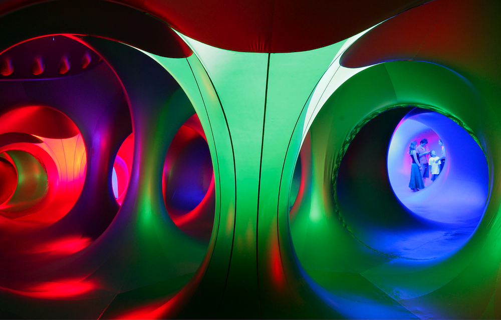 Lay in the grass under the dome of pulsing projections, swing from an illuminated cloud, slide through the heart of a unicorn… experience the unexplainable.